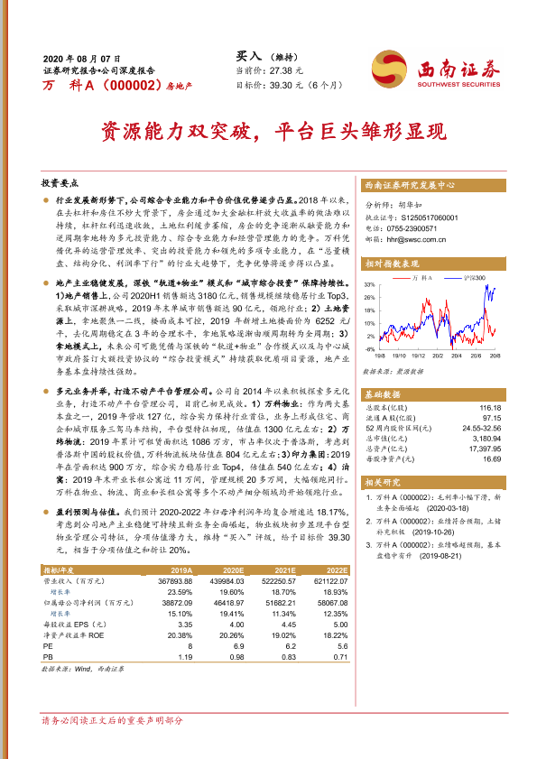 【西南证券】【20200807】20200807-西南证券-万科A-000002.SZ-资源能力双突破,平台巨头雏形显现-53页