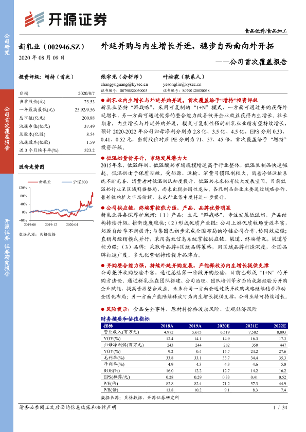 【开源证券】【20200809】新乳业-002946.SZ-公司首次覆盖报告:外延并购与内生增长并进,稳步自西南向外开拓-34页