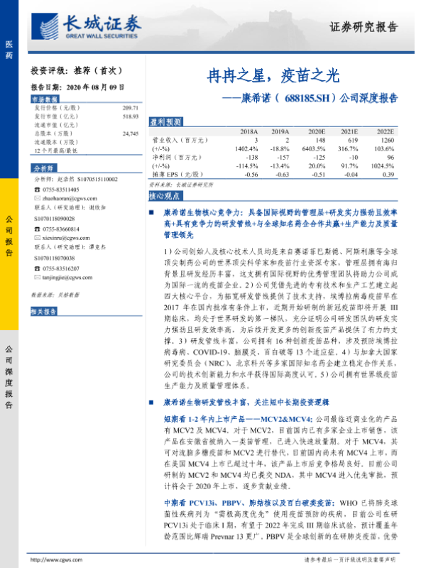 【长城证券】【20200809】20200809-长城证券-康希诺-688185.SH-公司深度报告:冉冉之星,疫苗之光-35页