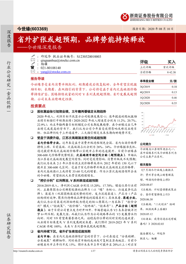 【浙商证券】【20200810】今世缘深度报告:省外扩张或超预期,品牌势能持续释放-37页