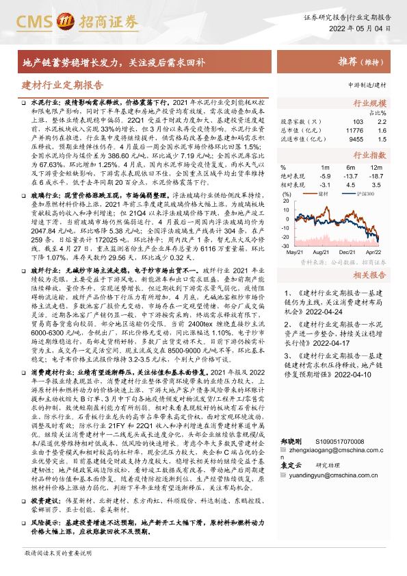 【海通证券】【20220504】建材行业定期报告:地产链蓄势稳增长发力,关注疫后需求回补-53页