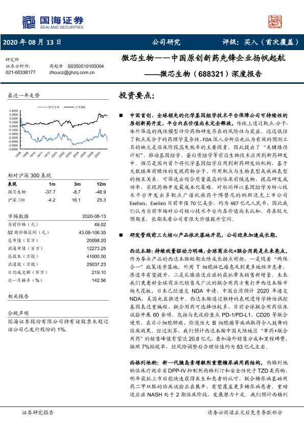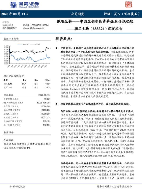 【国海证券】【20200813】微芯生物——中国原创新药先锋企业扬帆起航-48页