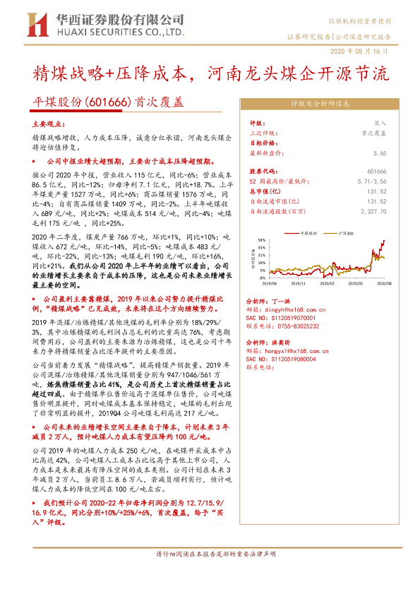【华西证券】【20200816】20200816-华西证券-平煤股份-601666.SH-首次覆盖:精煤战略+压降成本,河南龙头煤企开源节流-23页