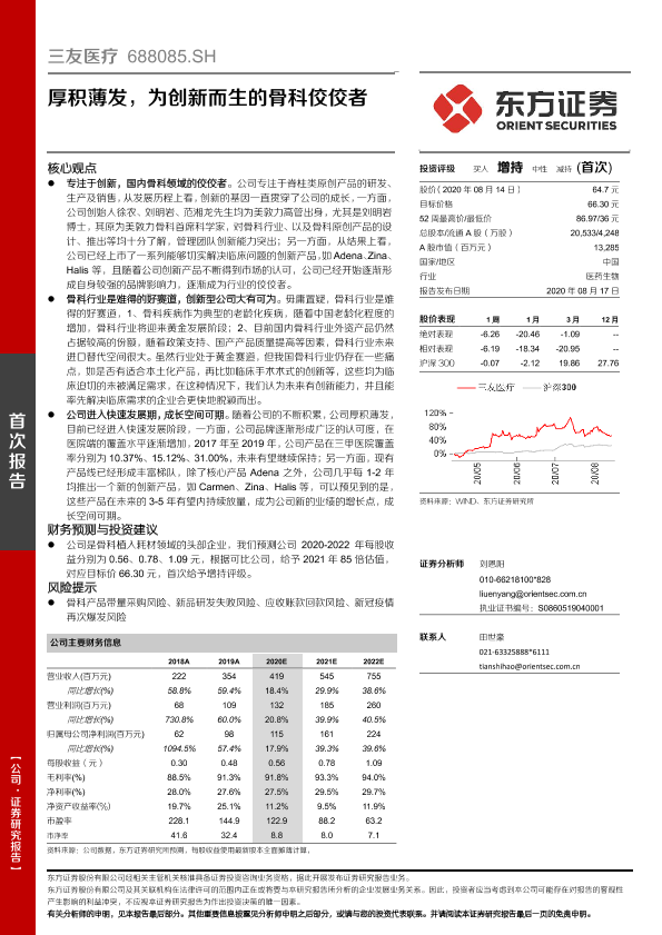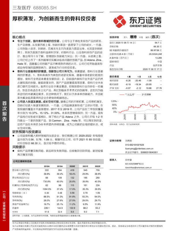 【东方证券】【20200817】三友医疗-688085.SH-厚积薄发,为创新而生的骨科佼佼者-32页