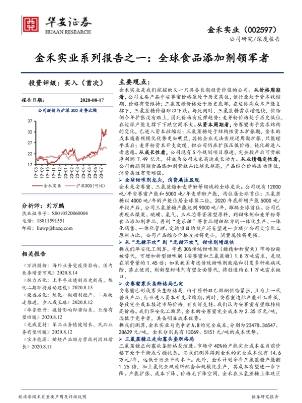 【华安证券】【20200817】金禾实业系列报告之一:全球食品添加剂领军者-54页