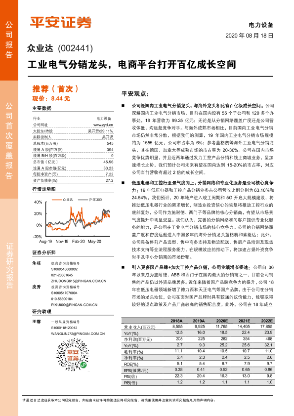 【平安证券】【20200818】众业达-002441.SZ-工业电气分销龙头,电商平台打开百亿成长空间-23页