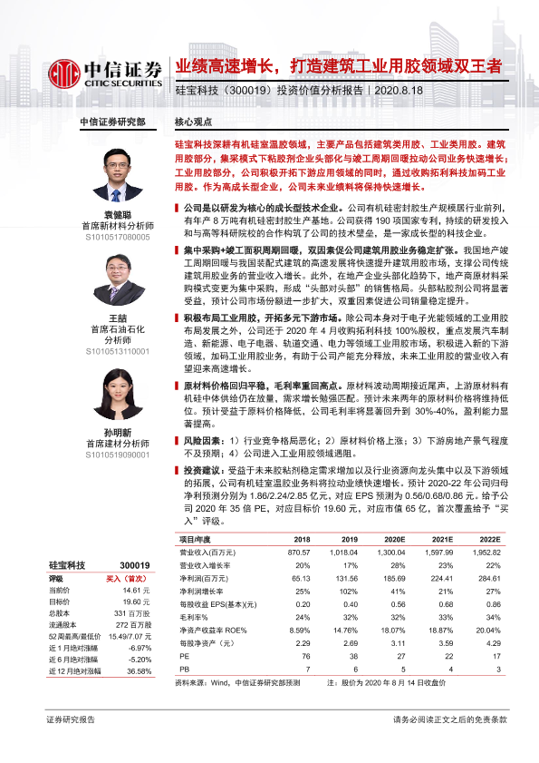 业绩预测 工业用胶 建筑用胶 有机硅密封胶 硅宝科技