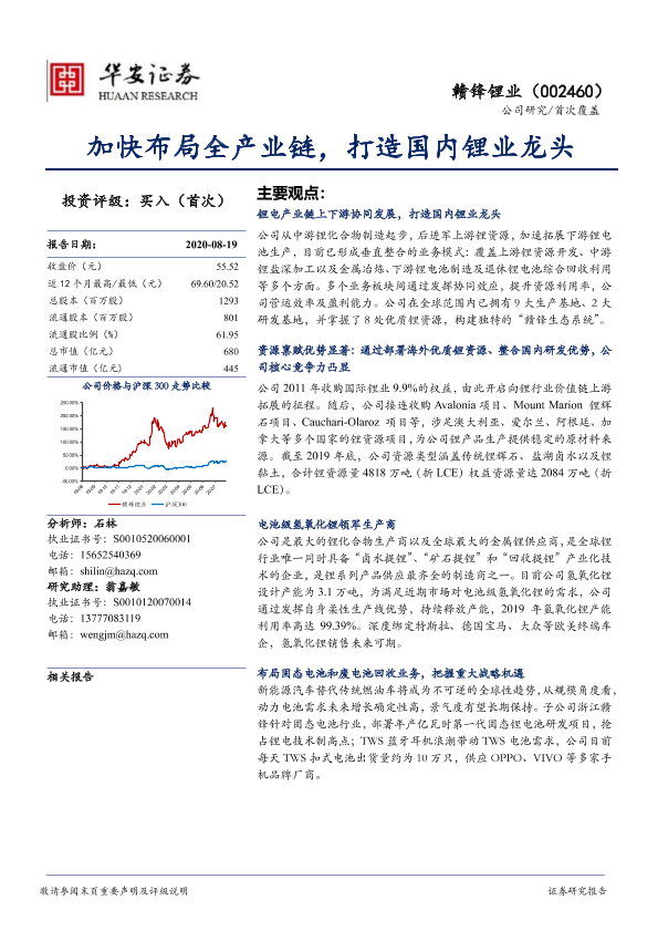 【华安证券】【20200819】加快布局全产业链,打造国内锂业龙头-20页
