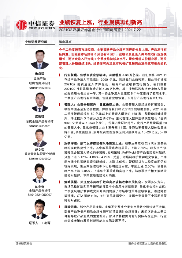 【中信证券】【20210722】2021Q2私募证券基金行业回顾与展望:业绩恢复上涨,行业规模再创新高-20页