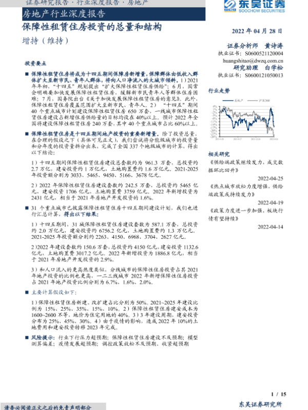 【东吴证券】【20220428】房地产行业深度报告:保障性租赁住房投资的总量和结构-15页