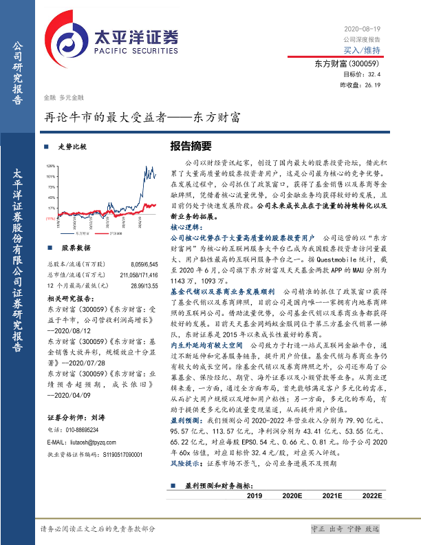 【太平洋证券】【20200819】再论牛市的最大受益者——东方财富-22页