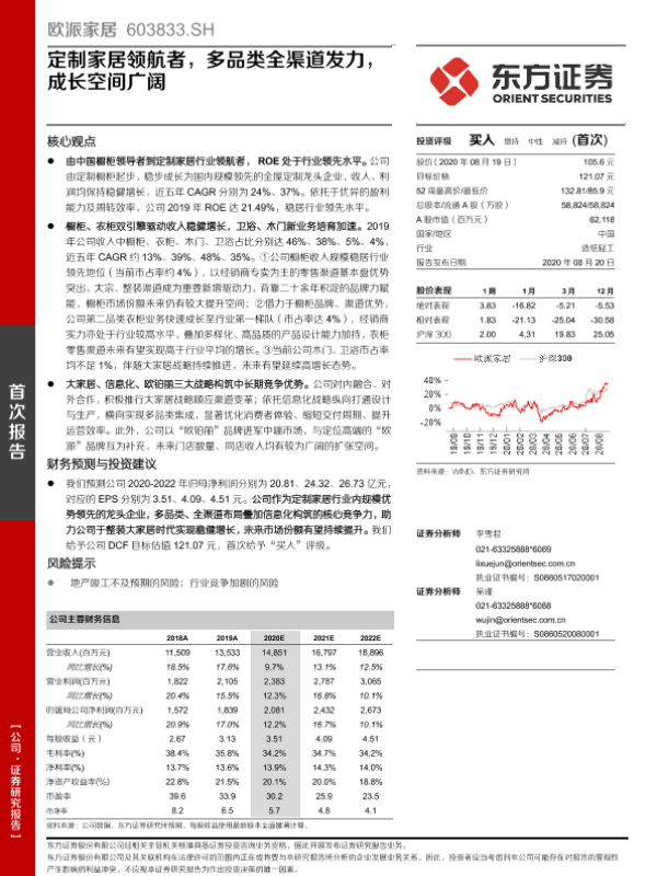 【东方证券】【20200820】欧派家居-603833.SH-定制家居领航者,多品类全渠道发力,成长空间广阔-33页
