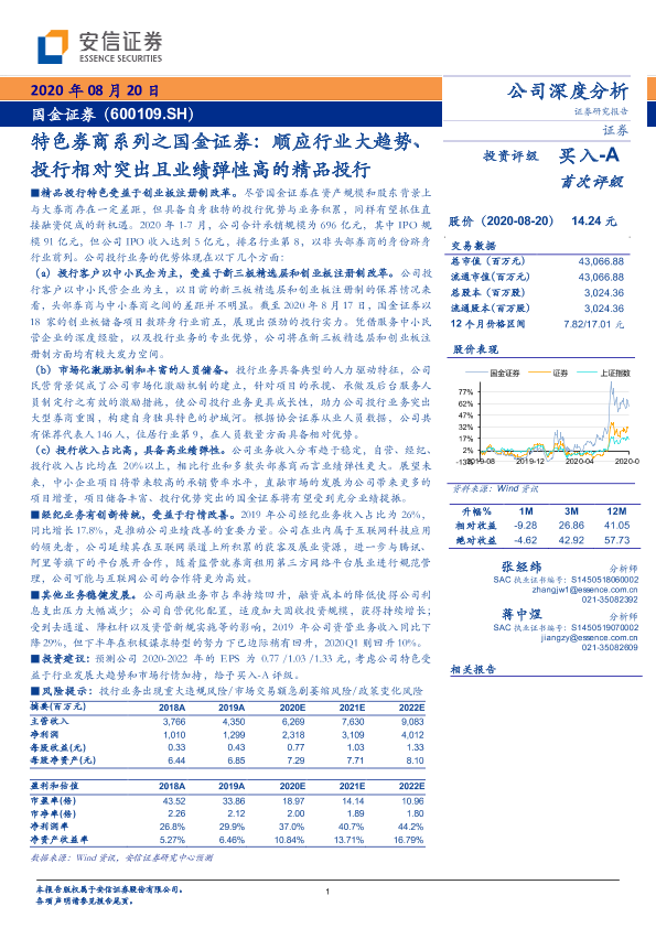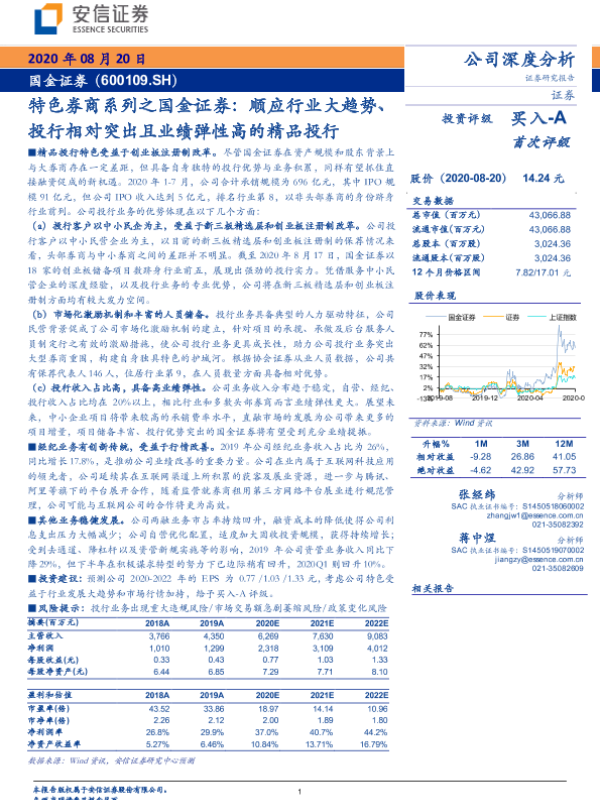 【安信证券】【20200820】特色券商系列之国金证券:顺应行业大趋势、投行相对突出且业绩弹性高的精品投行-19页