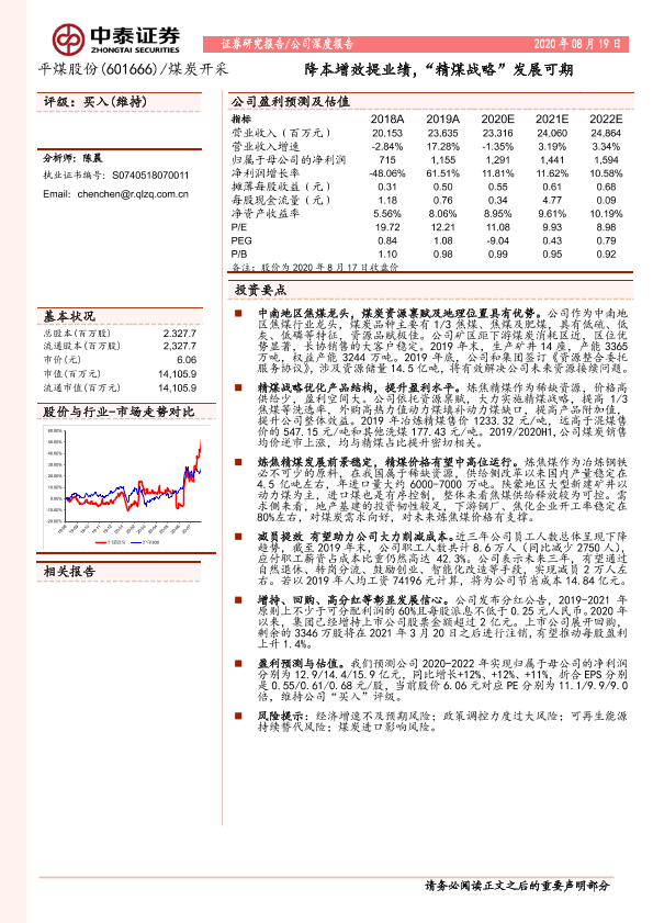 【中泰证券】【20200819】降本增效提业绩,“精煤战略”发展可期-28页