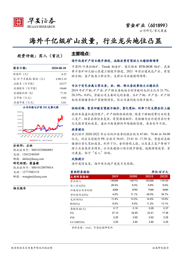 【华安证券】【20200820】海外千亿级矿山放量,行业龙头地位凸显-23页