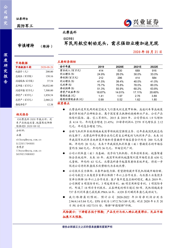 【兴业证券】【20200821】军民用航空制动龙头,需求强劲业绩加速兑现-51页