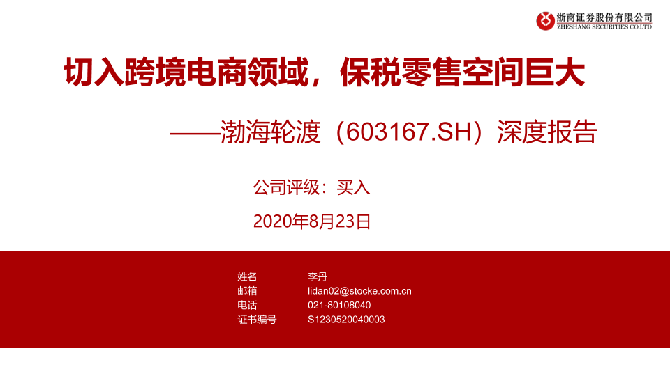 【浙商证券】【20200823】切入跨境电商领域,保税零售空间巨大——渤海轮渡(603167.SH)深度报告-52页
