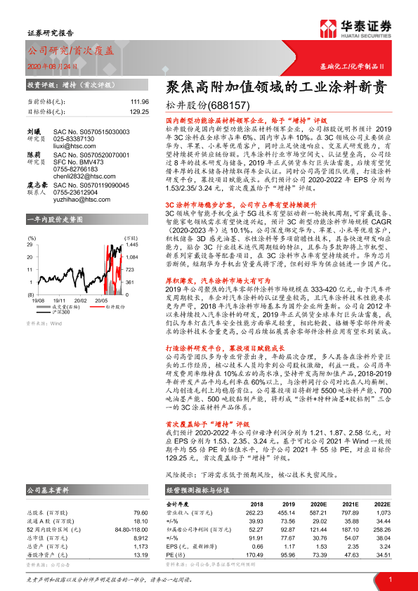 【华泰证券】【20200824】20200824-华泰证券-松井股份-688157.SH-聚焦高附加值领域的工业涂料新贵-26页
