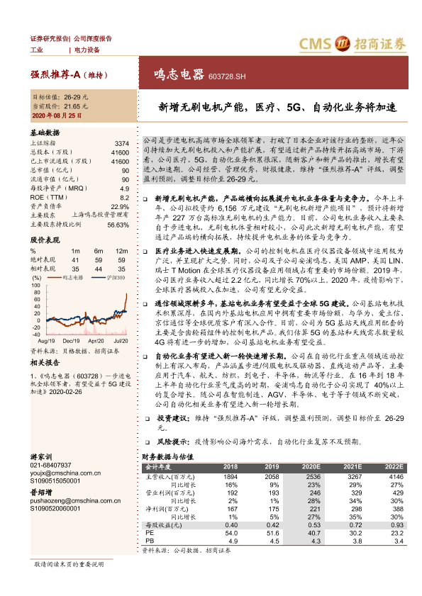 【海通证券】【20200825】新增无刷电机产能,医疗、5G、自动化业务将加速-15页
