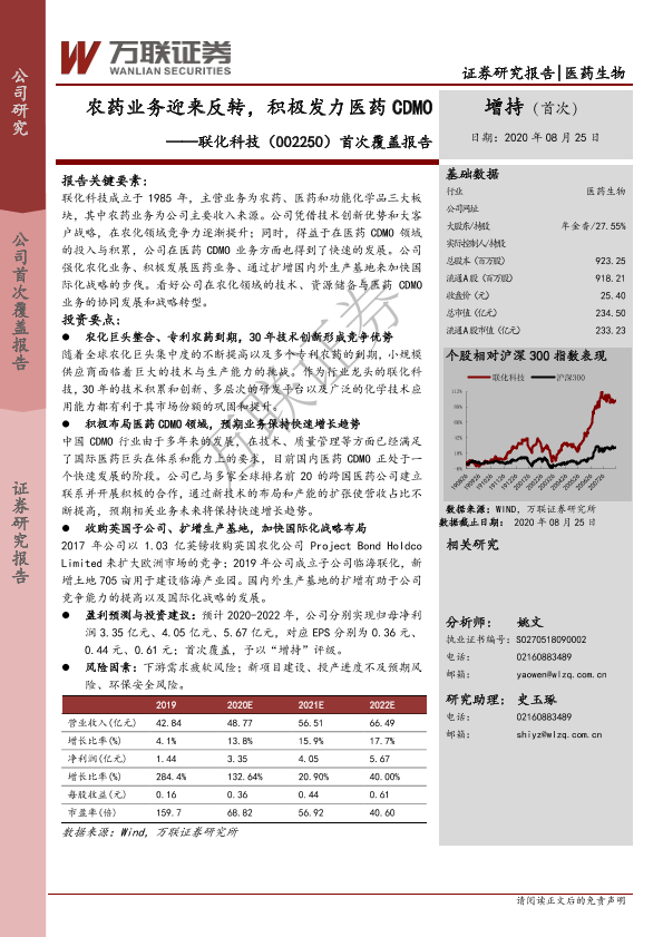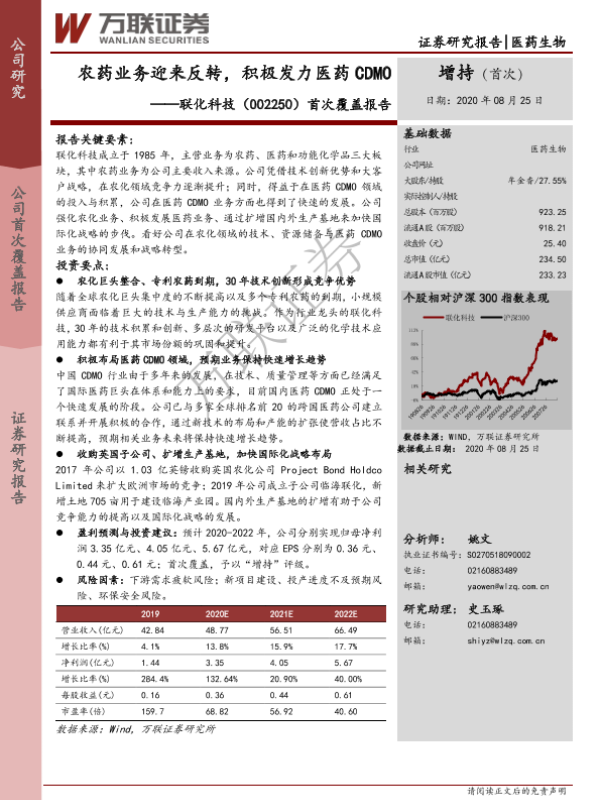 【万联证券】【20200825】联化科技-002250.SZ-首次覆盖报告:农药业务迎来反转,积极发力医药CDMO-25页