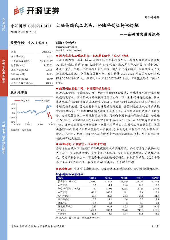 【开源证券】【20200827】中芯国际-688981.SH-公司首次覆盖报告:大陆晶圆代工龙头,登陆科创板扬帆起航-31页