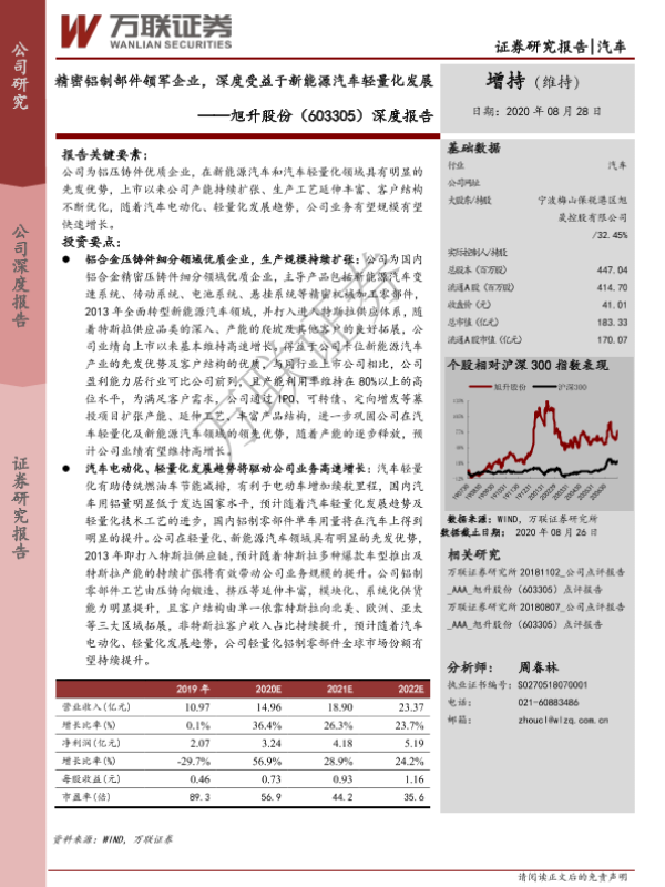 【万联证券】【20200828】20200828-万联证券-旭升股份-603305.SH-深度报告:精密铝制部件领军企业,深度受益于新能源汽车轻量化发展-19页