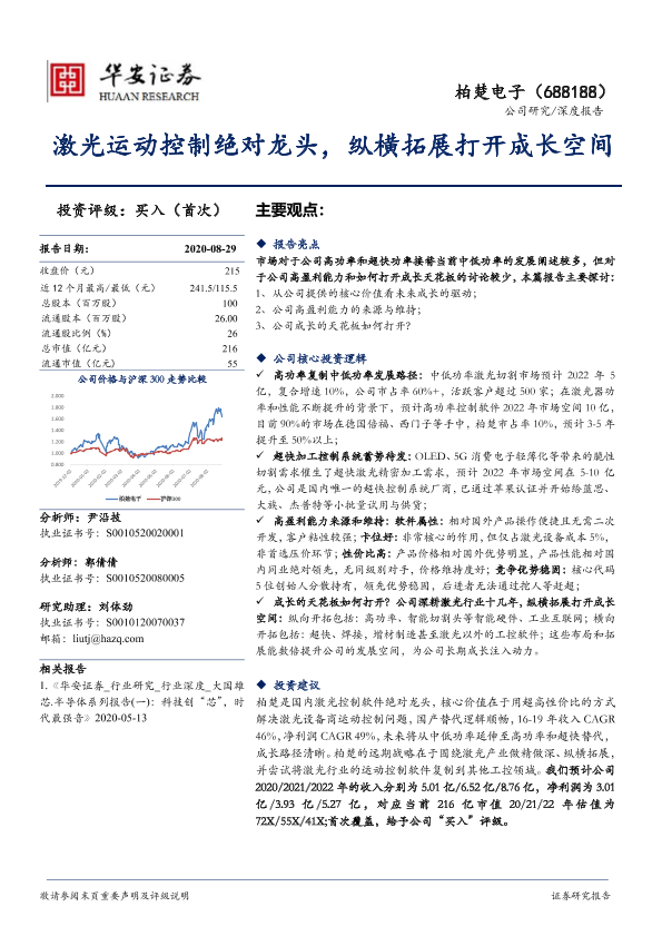 【华安证券】【20200829】20200829-华安证券-柏楚电子-688188.SH-激光运动控制绝对龙头,纵横拓展打开成长空间-29页