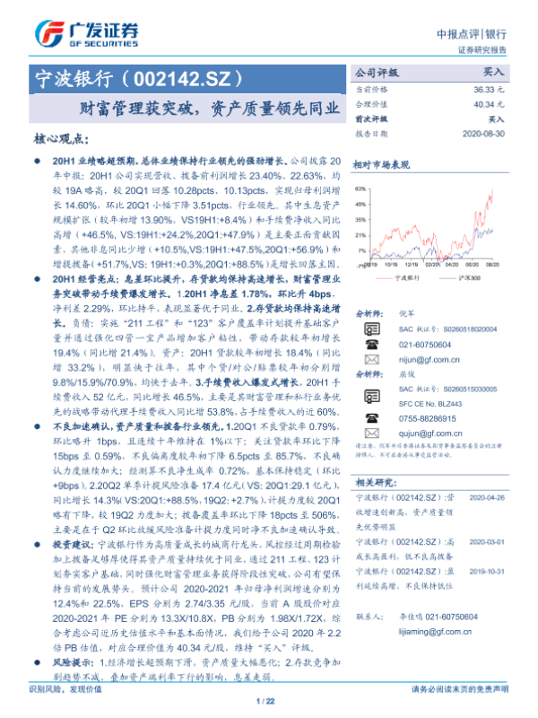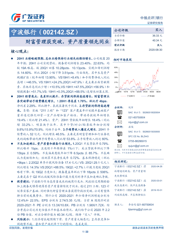 【广发证券】【20200830】宁波银行(002142.SZ) 财富管理获突破,资产质量领先同业-22页