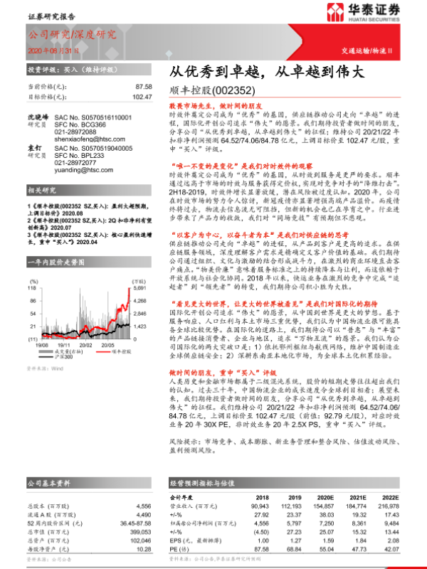 深度研究 物流行业 股票分析 证券报告 顺丰控股