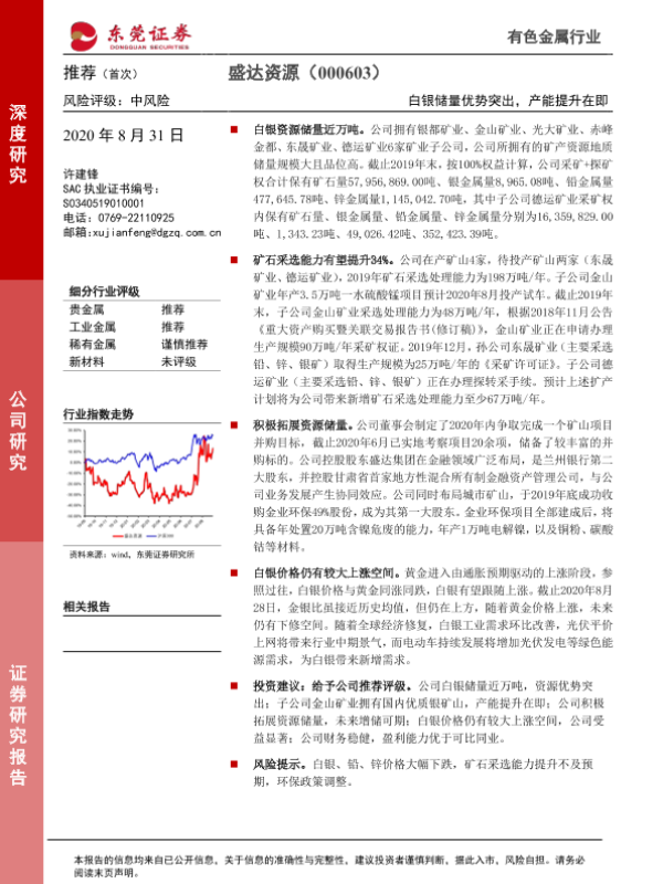 【东莞证券】【20200801】盛达资源-000603.SZ-白银储量优势突出,产能提升在即-26页
