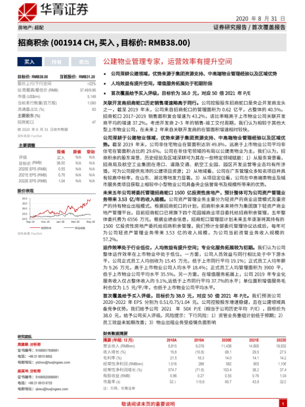 【华兴证券】【20200831】招商积余-001914.SZ-公建物业管理专家,运营效率有提升空间-28页