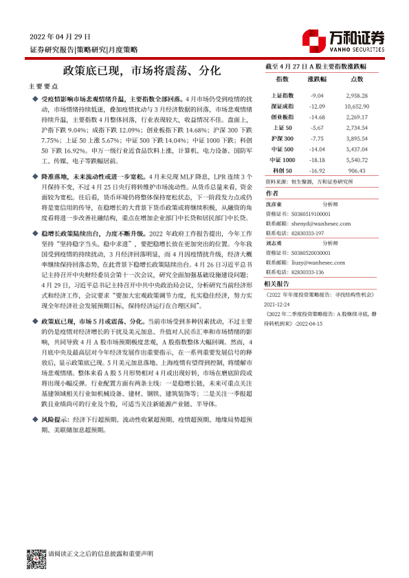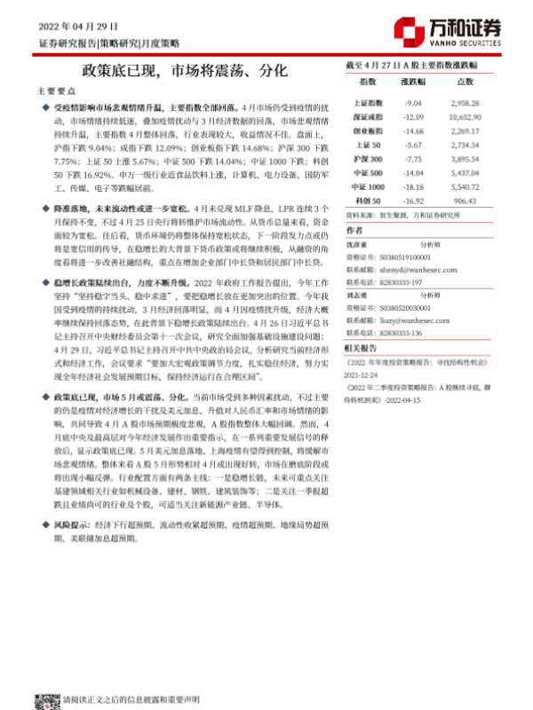【万和证券】【20220429】月度策略:政策底已现,市场将震荡、分化-16页