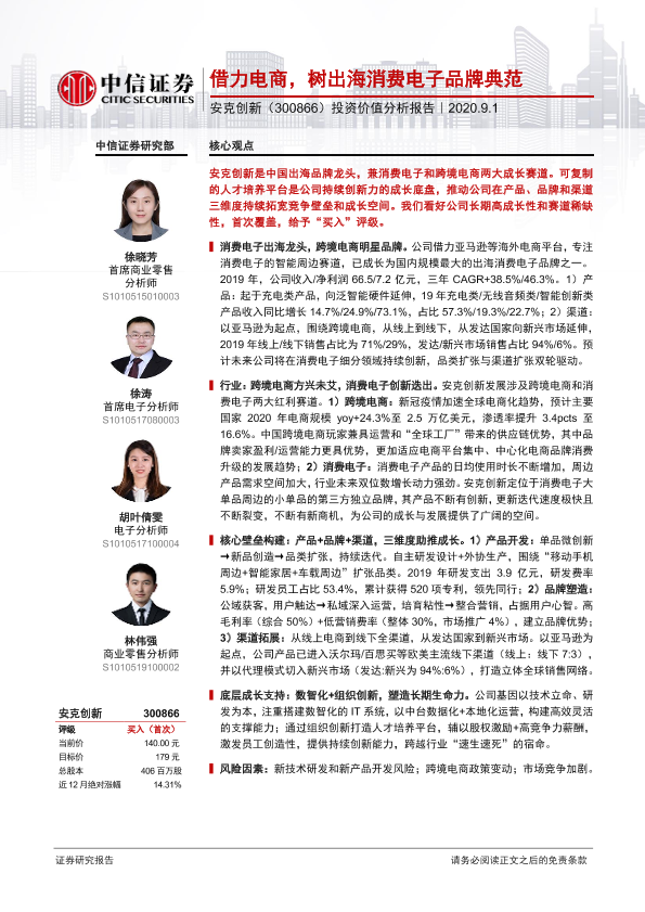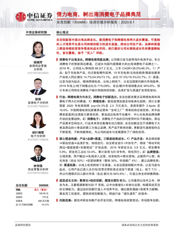 【中信证券】【20200901】20200901-中信证券-安克创新-300866.SZ-投资价值分析报告:借力电商,树出海消费电子品牌典范-51页