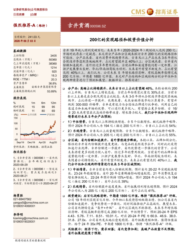 【海通证券】【20200903】古井贡酒-000596.SZ-200亿的实现路径和投资价值分析-17页