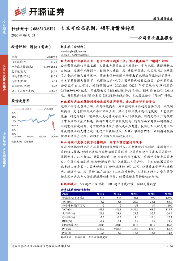 【开源证券】【20200903】仕佳光子-公司首次覆盖报告:自主可控芯来到,领军者蓄势待发-24页