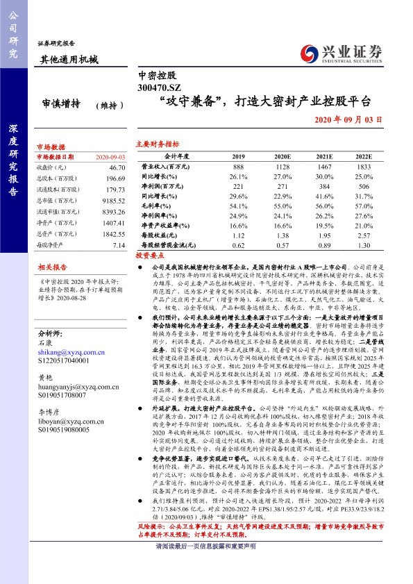 【兴业证券】【20200903】中密控股 300470.SZ “攻守兼备”,打造大密封产业控股平台-34页