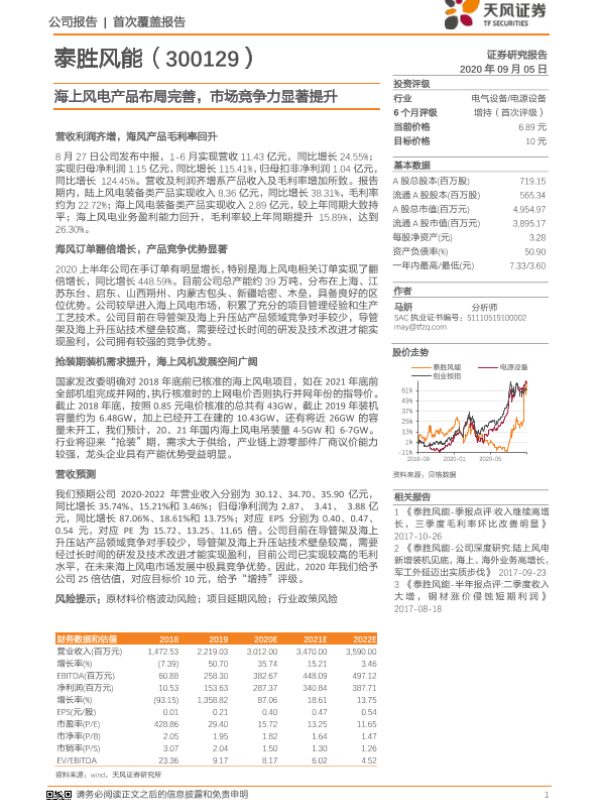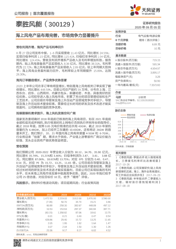 【天风证券】【20200905】泰胜风能-海上风电产品布局完善,市场竞争力显著提升-29页