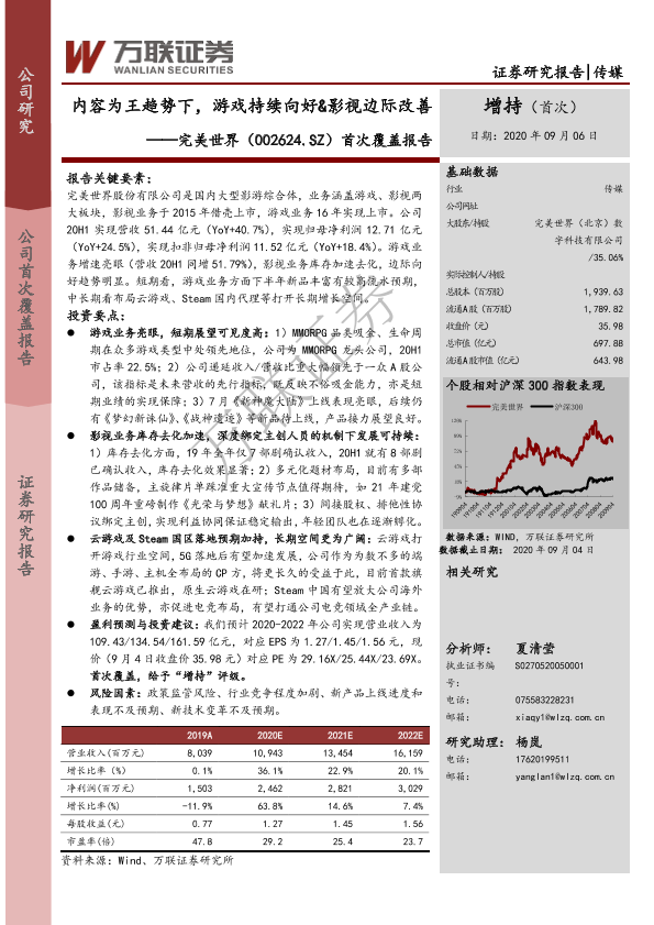 【万联证券】【20200906】内容为王趋势下,游戏持续向好&影视边际改善——完美世界(002624.SZ)首次覆盖报告-35页