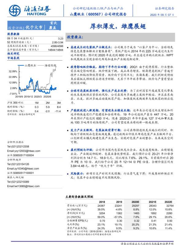 【海通证券】【20200907】山鹰国际-厚积薄发,雄鹰展翅-23页