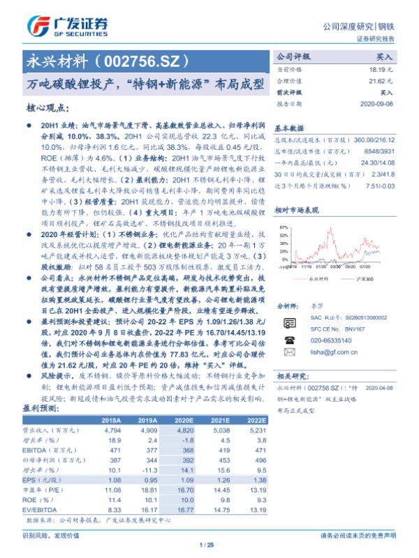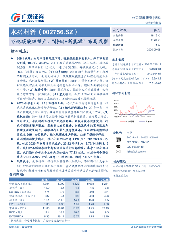 【广发证券】【20200908】万吨碳酸锂投产,“特钢+新能源”布局成型-25页