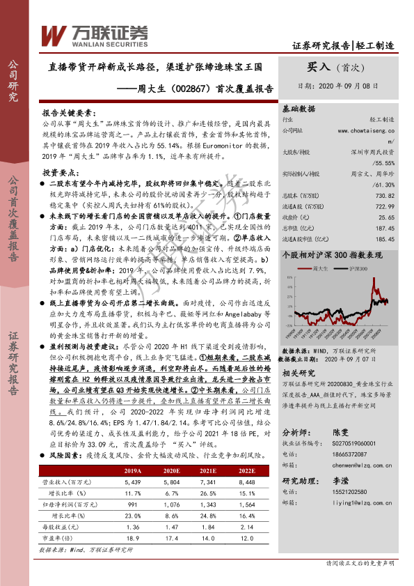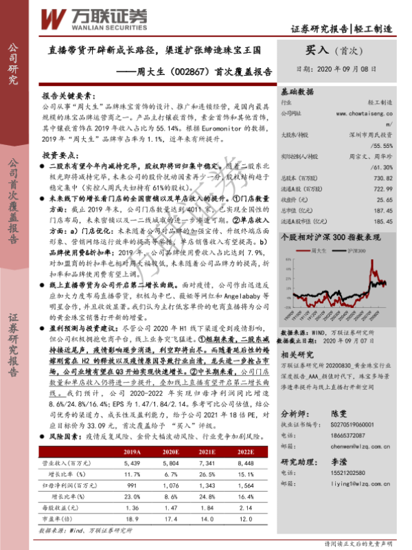 【万联证券】【20200908】20200908-万联证券-周大生-002867.SZ-首次覆盖报告:直播带货开辟新成长路径,渠道扩张缔造珠宝王国-41页