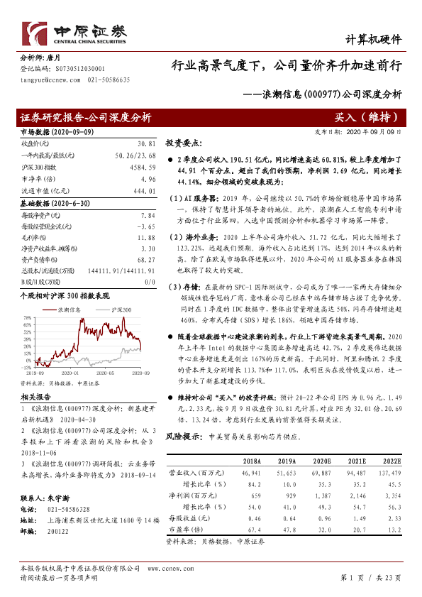 人工智能 服务器市场 浪潮信息 海外业务 财务分析