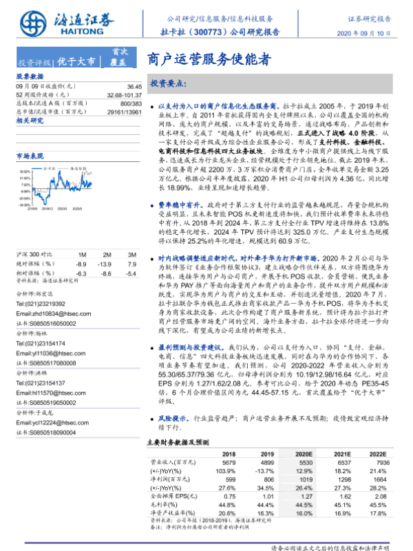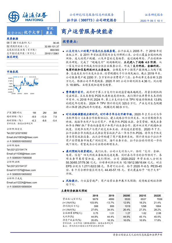 【海通证券】【20200910】20200910-海通证券-拉卡拉-300773.SZ-公司研究报告:商户运营服务使能者-23页