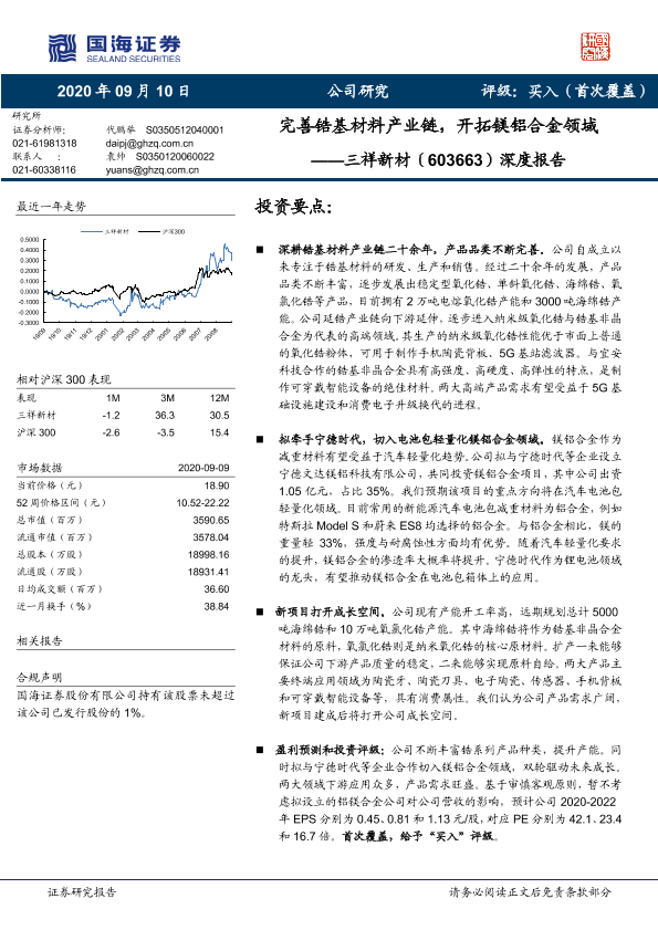 【国海证券】【20200910】20200910-国海证券-三祥新材-603663.SH-深度报告:完善锆基材料产业链,开拓镁铝合金领域-21页