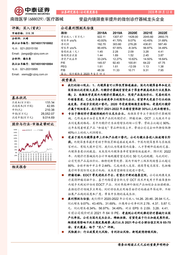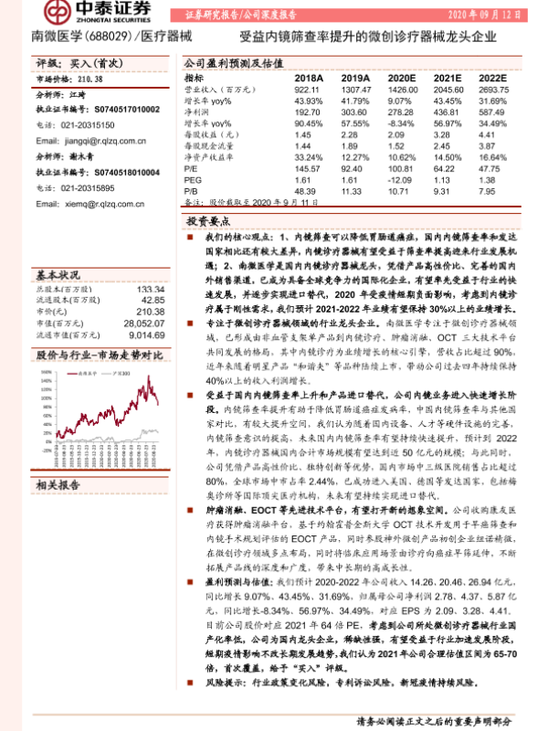 【中泰证券】【20200912】受益内镜筛查率提升的微创诊疗器械龙头企业-25页