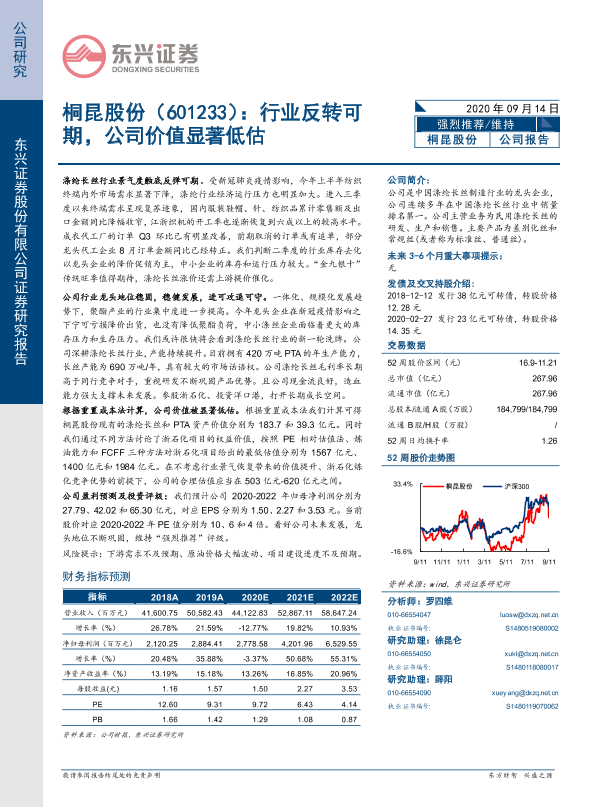 【东兴证券】【20200914】桐昆股份:行业反转可期,公司价值显著低估-22页