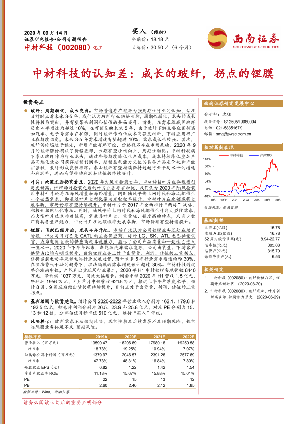 【西南证券】【20200914】中材科技的认知差:成长的玻纤,拐点的锂膜-29页