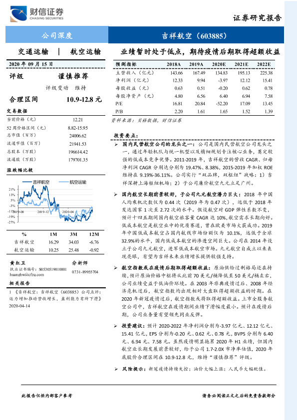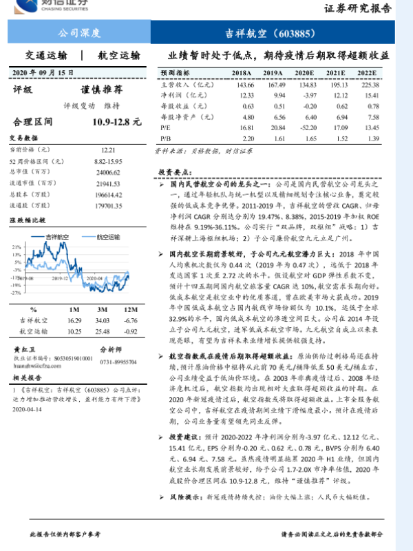 低成本航空 民营航空 疫情后期 航空运输 超额收益