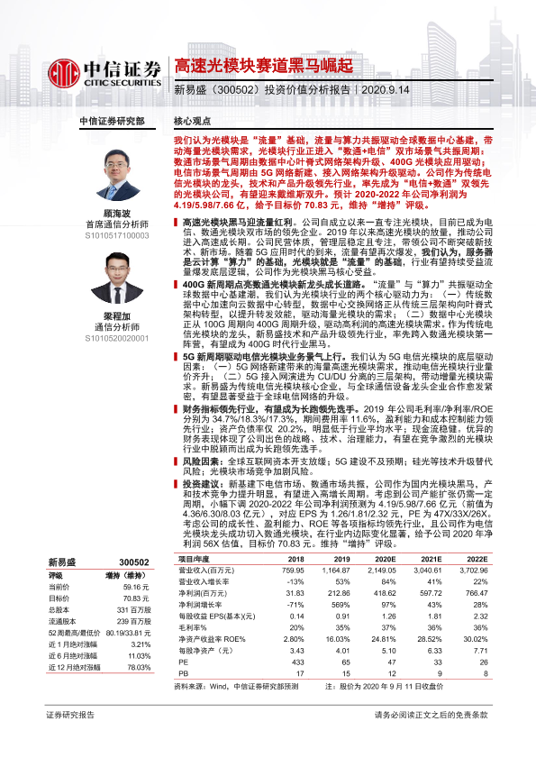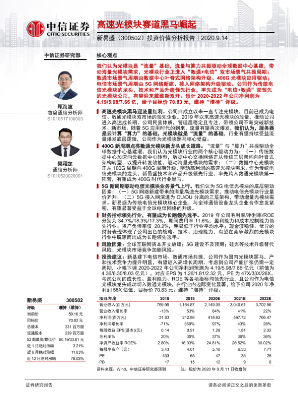 【中信证券】【20200914】新易盛(300502)投资价值分析报告:高速光模块赛道黑马崛起-25页