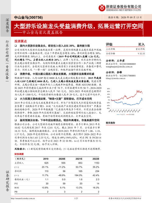 【浙商证券】【20200915】20200915-浙商证券-金马游乐-300756.SZ-中山金马首次覆盖报告:大型游乐设施龙头受益消费升级,拓展运营打开空间-23页